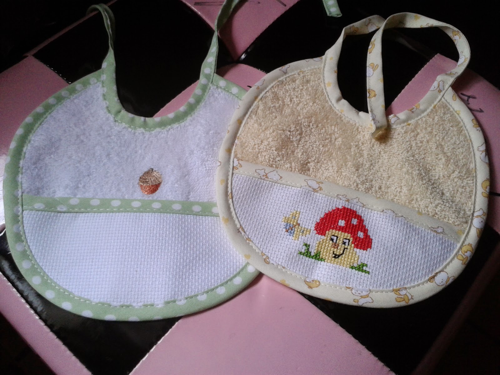 Mentre un bavaglino è stato ricamato, l'altro è lì in attesa.....